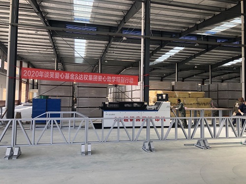 隨后,在廠區相關人員的帶領下6名學子參觀了達權集團裝配式產業園區,走進新的生產車間,看著正在忙碌的生產人員,集團董事龐達權指著前面的生產設備告訴大家:“這是我們集團目前引進的最先進的生產線——3D輕鋼房屋打印生產線,并告訴大家傳統混凝房屋建造大概需要半年的時間才能完成,而這種技術建造房屋只需要20天左右,所有的結構龍骨都由它來完成,在未來住房將會像搭積木一樣簡單。